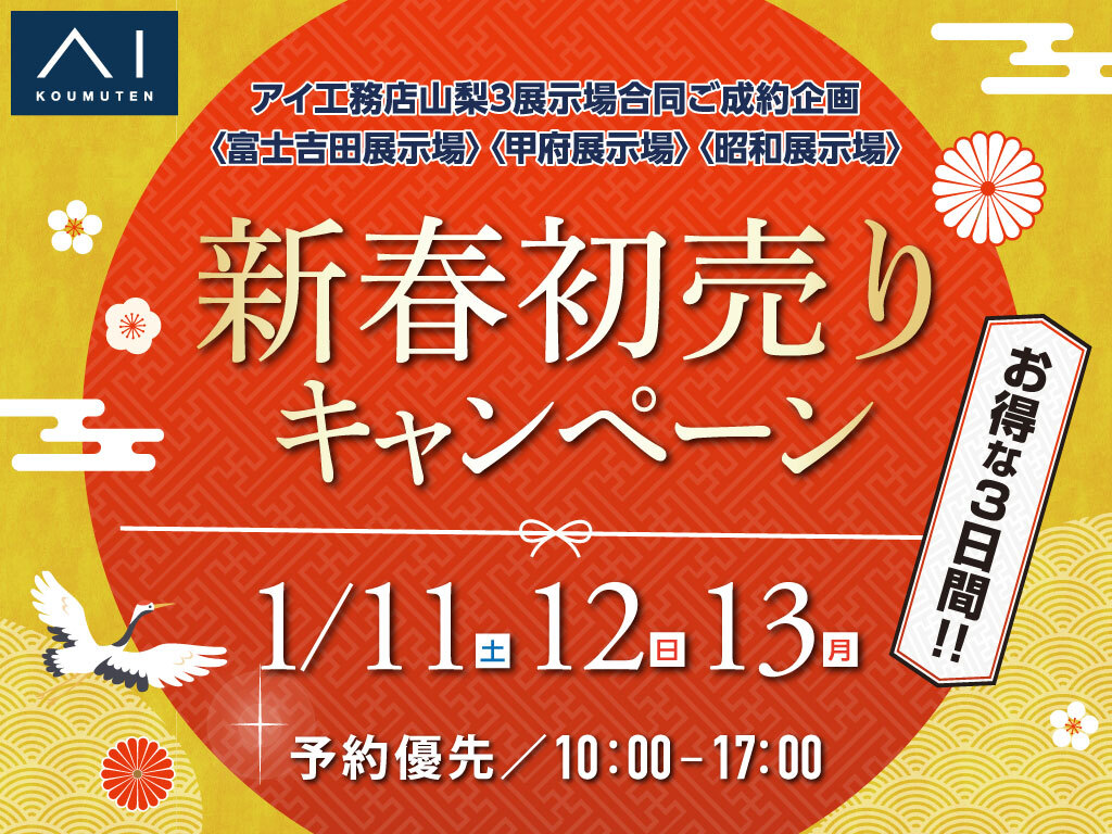 | タイトル | 甲府展示場 新春初売りキャンペーン 1/11.12.13 |