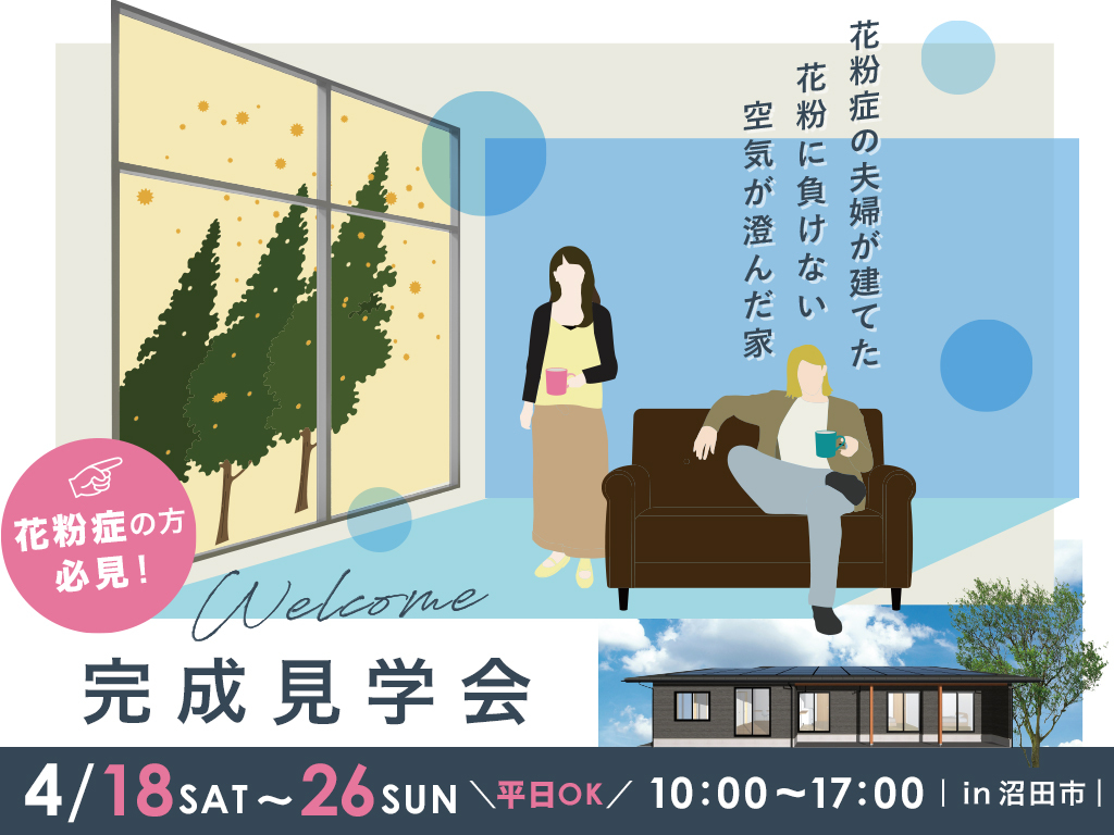 | タイトル | 花粉に負けない空気が澄んだ家 完成見学会 |