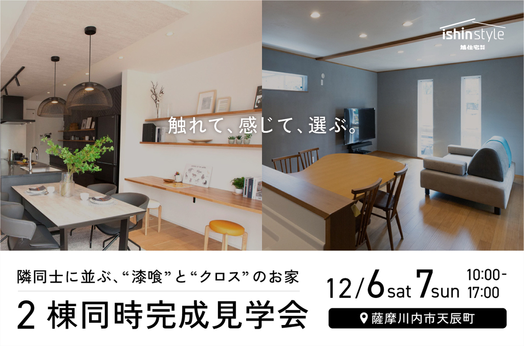 | タイトル | 「触れて、感じて、選ぶ。」隣同士に並ぶ、‘‘漆喰‘‘と‘‘クロス‘‘のお家 |