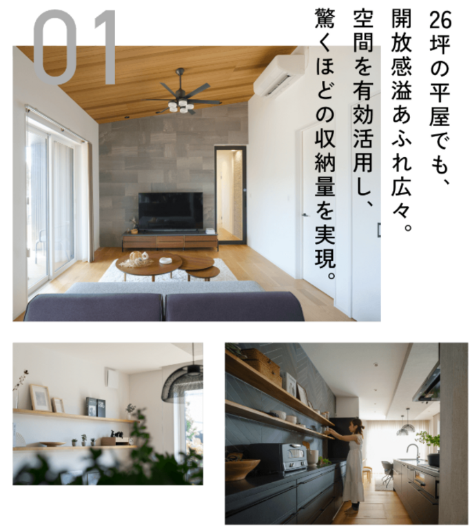 01~26坪の平屋でも、開放感あふれ広々。空間を有効活用し、驚くほどの収納量を実現。~