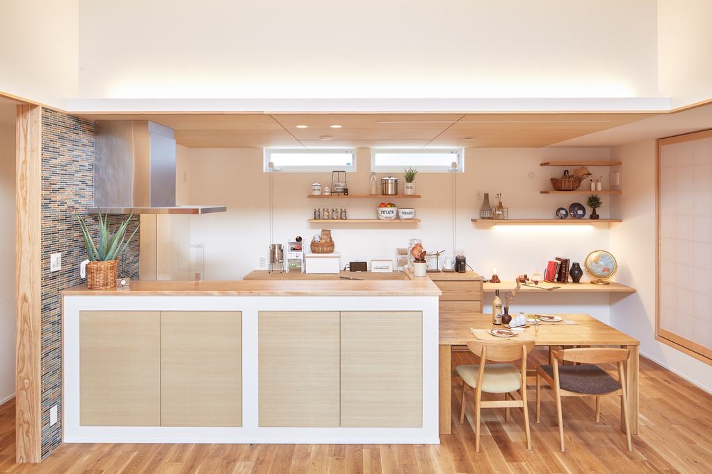 キッチンの背面収納を造作に。