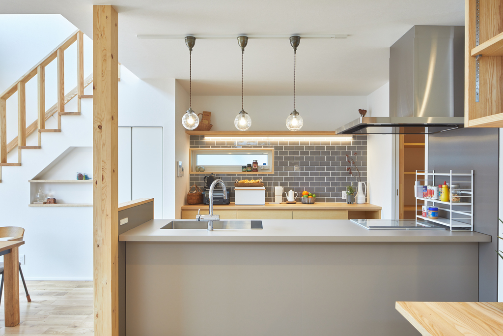 キッチンは、ダイニング上に設けた吹き抜けが