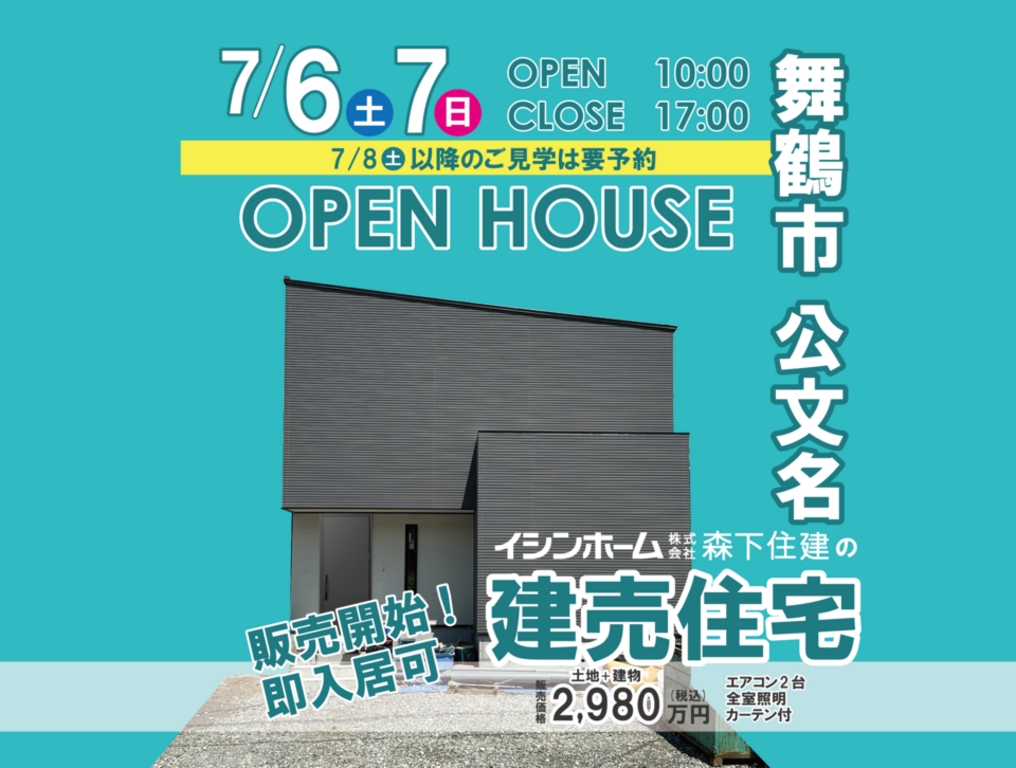 | タイトル | 【7月6日・7日開催】舞鶴市公文名にて建売住宅完成販売会 |