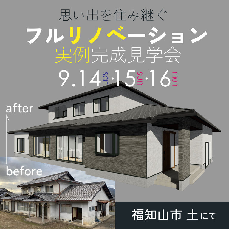 | タイトル | 【9月14日・15日・16日開催】福知山市土にてフルリノベーション実例完成見学会 |