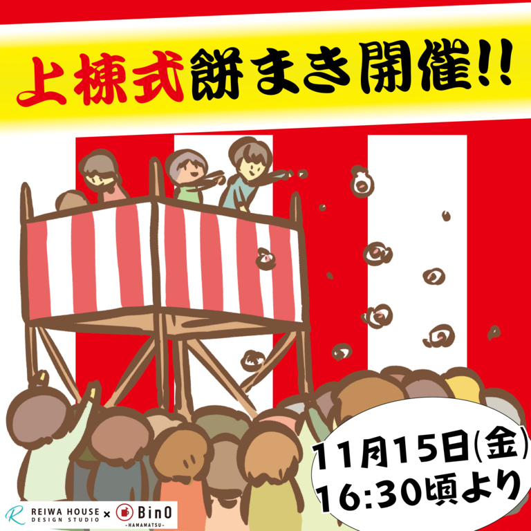 皆様、こんにちは!この度、BinO浜松では、浜松市中央区舞阪町弁天島にて「LOAFERモデルハウス」の上棟餅まきを開催いたします。家づくりの大切な瞬間を共に祝うこのイベントに、ぜひご参加ください!