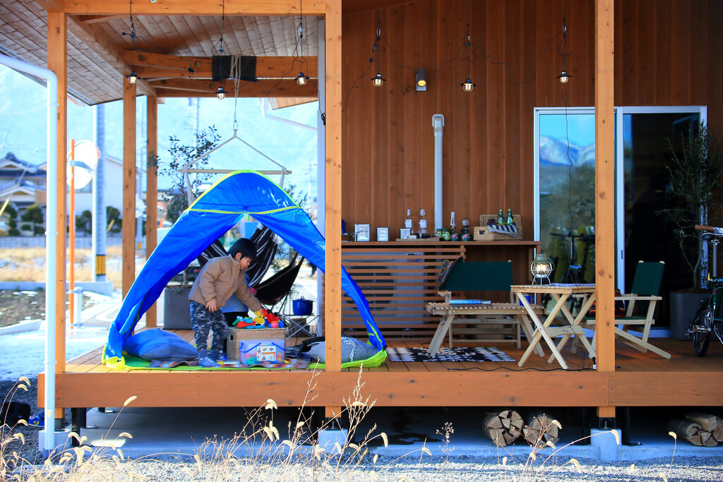 外を感じる心地良い空間として、あるいは汚れを気にせず作業ができるスペースとしてなど、自遊に使えます。