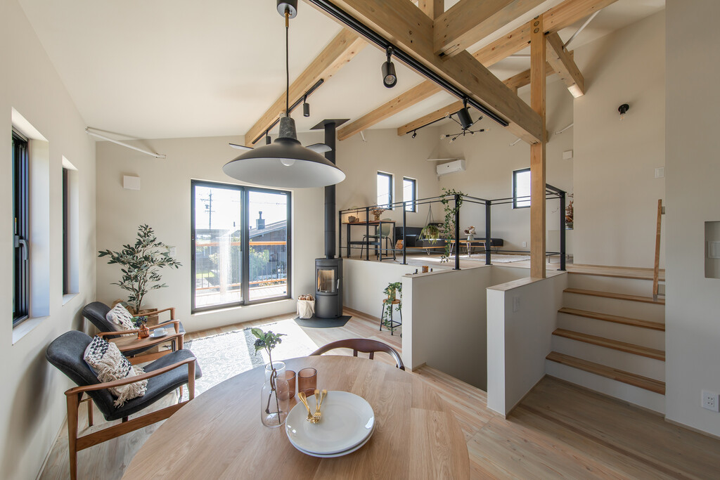 開放的な吹き抜けや自然の光を生かす設計により、一体感のある空間を演出します。
