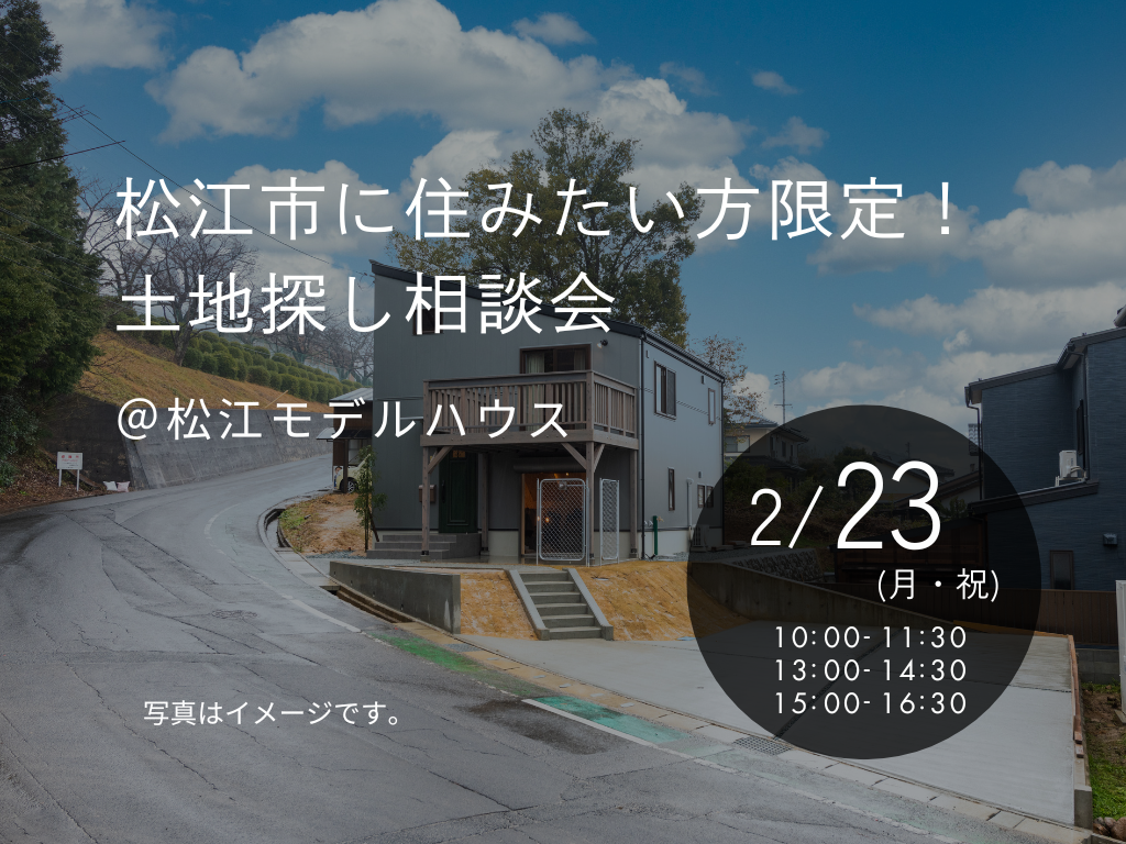 | タイトル | 2/23(月・祝) 松江市に住みたい方限定!土地探し相談会 |