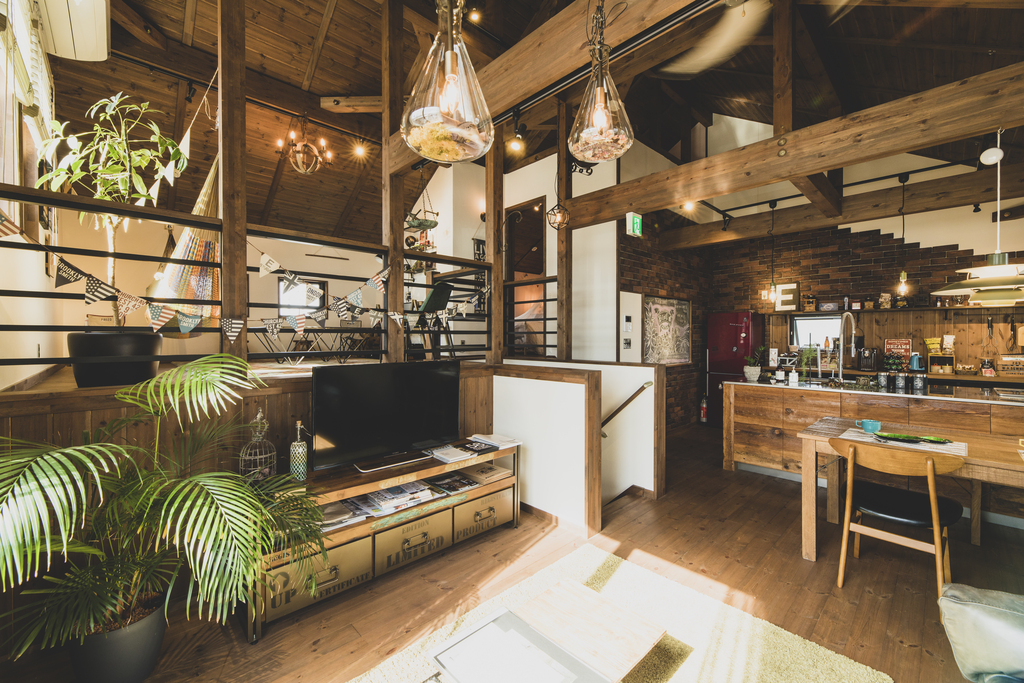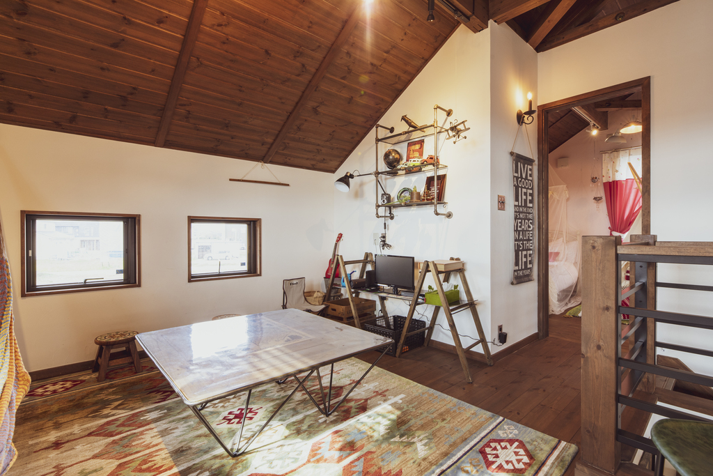 通常の2階建ては、階段や廊下がデッドスペースになりがちですが、スキップフロア構造は、限りある空間を最大限活用することで、くらしを楽しむためのボーナス空間を手に入れることができます。映画や音楽を楽しんだり、バイクをメンテナンスしたりと、日常をエンジョイできる空間が備えられています。