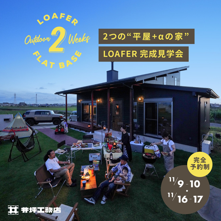 2つの“平屋+αの家” LOAFER 完成見学会を2週連続で開催致します。