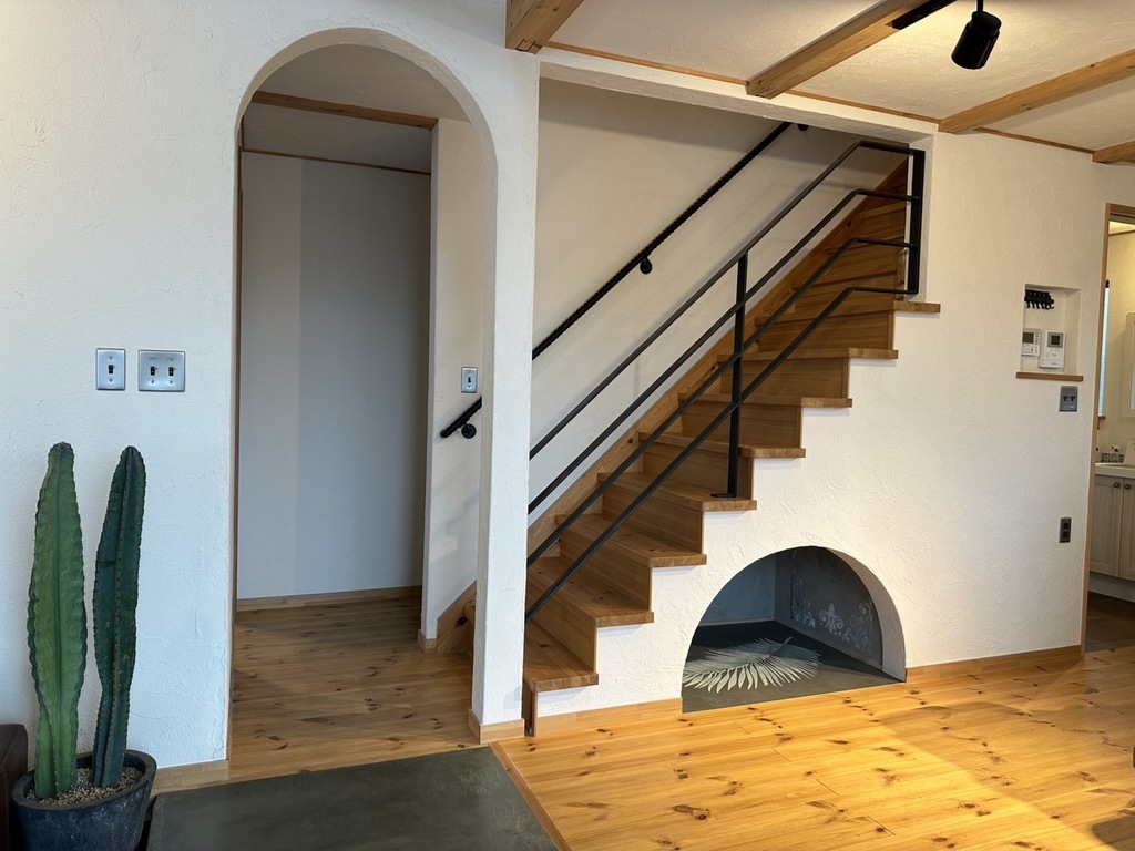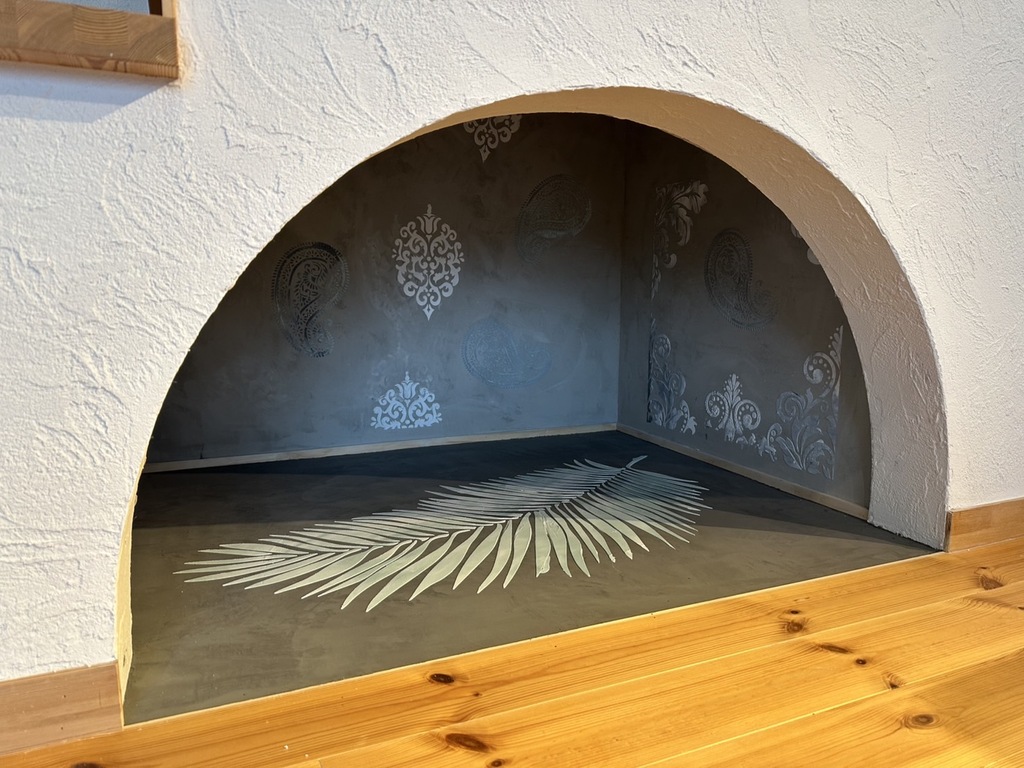 階段下のデッドスペースを活用。トルコのマイクロセメントとステンシルコンクリートで、ひんやり&お手入れ簡単。
