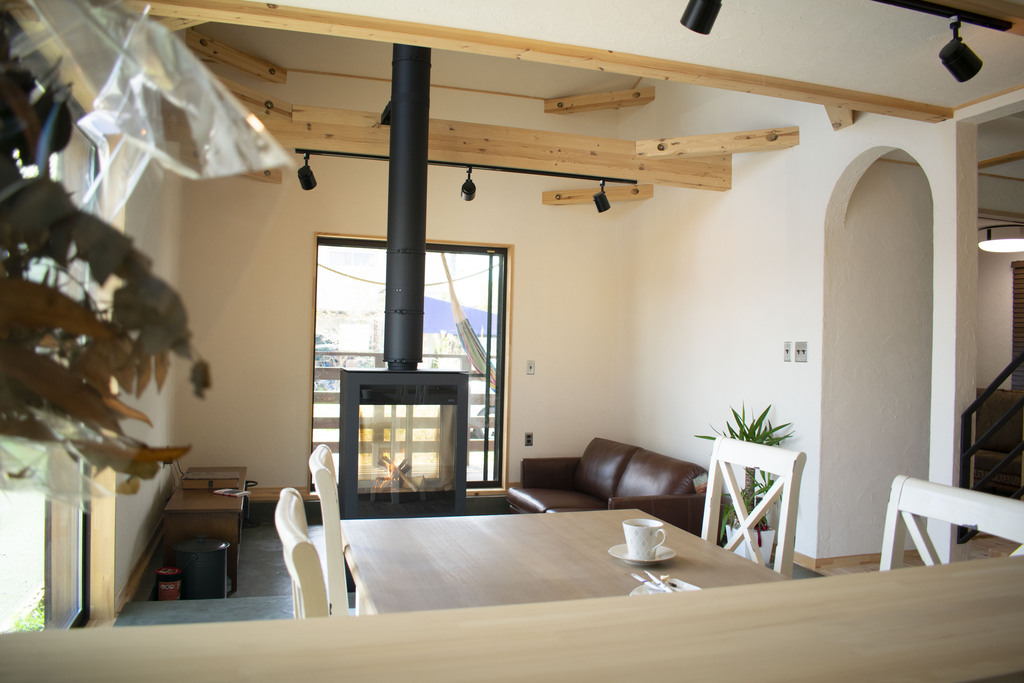 お洒落な内観はまるで本物のカフェ。愛犬と暮らすリアルな暮らしが想像できます。