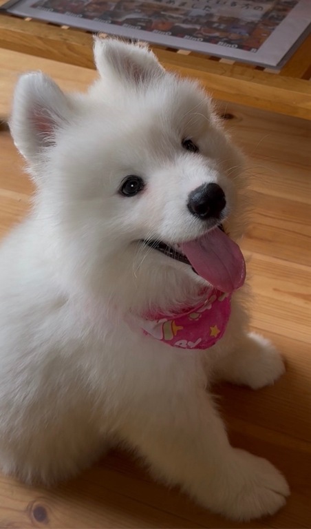 ふわふわで真っ白なサモエドの赤ちゃんがやってきました。