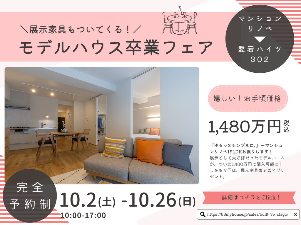 展示として大好評だったモデルルームが、ついに1,480万円で購入可能に!