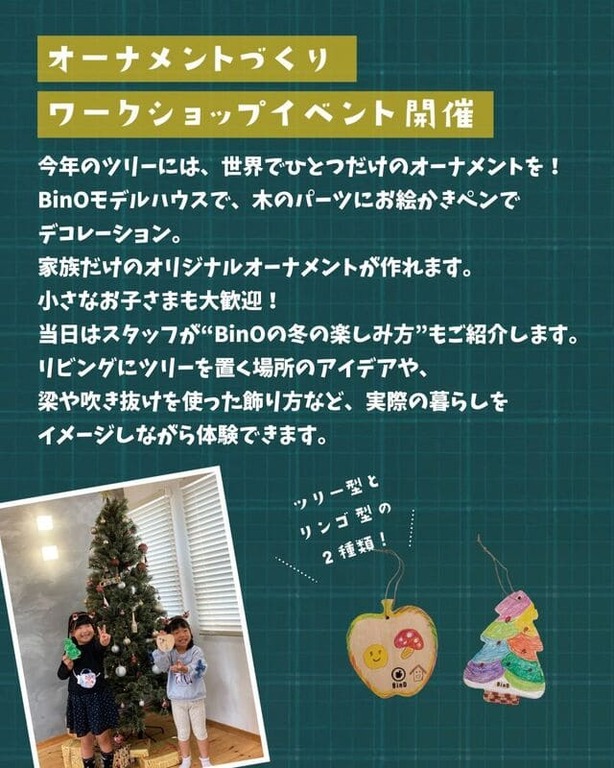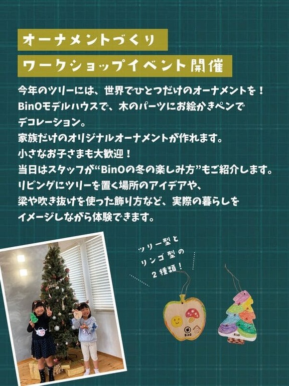 親子で一緒にクリスマスオーナメントを作成する楽しいワークショップを開催します!