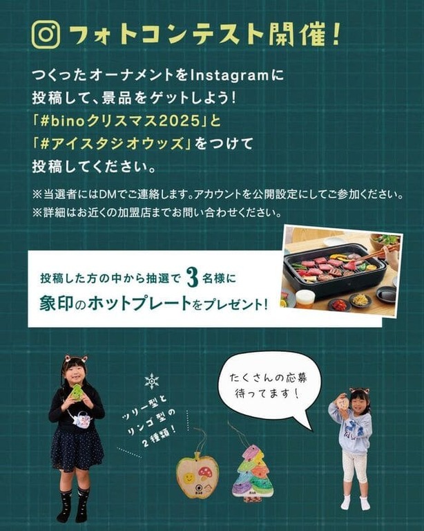 作ったオーナメントを撮影して、Instagramに投稿するだけで、