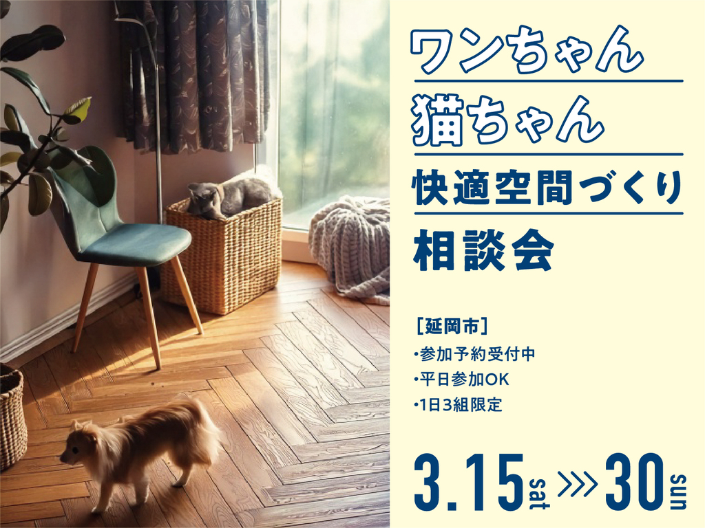 3/15〜30の期間中、「ワンちゃん・猫ちゃん」快適空間づくり相談会 in 延岡を開催します!!