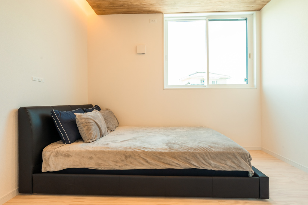 長時間光が届く窓を配置し、勾配天井にすることで開放感を演出。