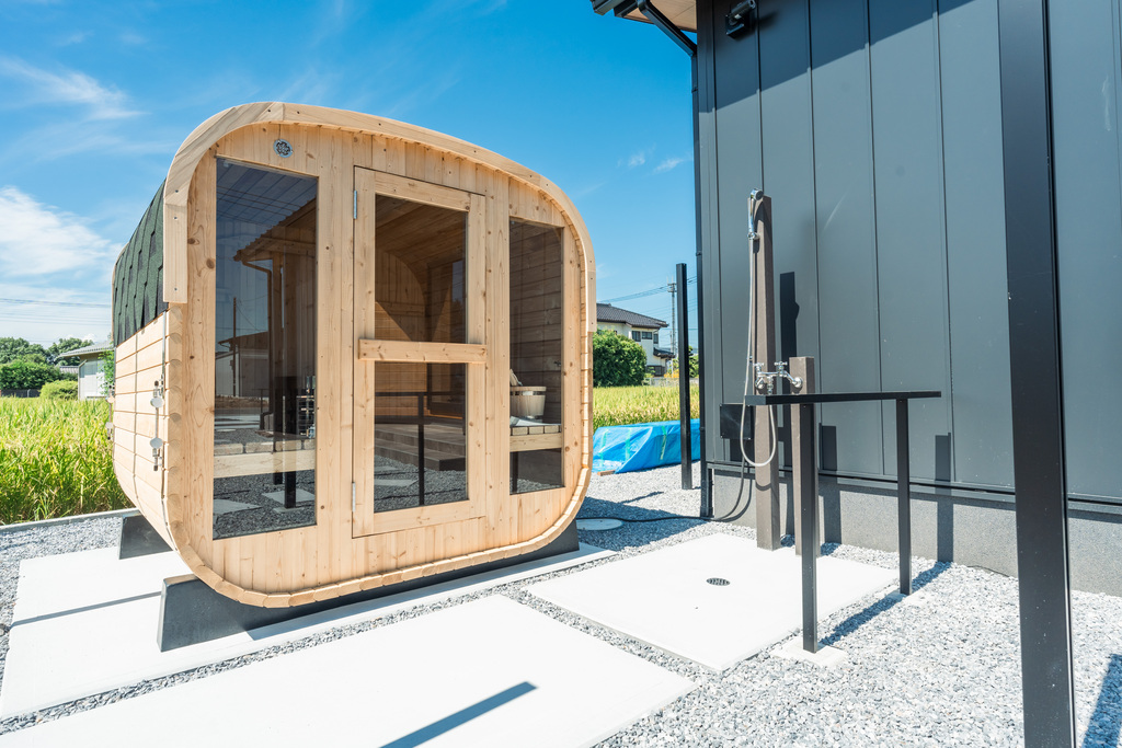 タイルデッキから屋外サウナまでの動線を確保し、好きな時にサウナを楽しめる設計です。