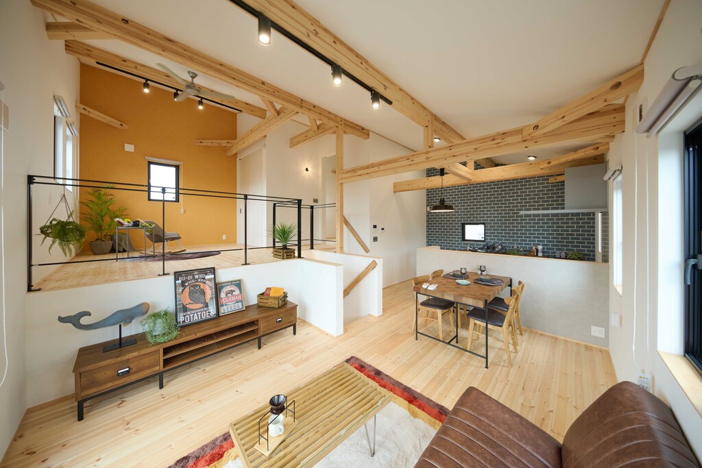 スキップフロアのため階に段差が生まれ空間ができ趣味に没頭できる時間も生まれる。