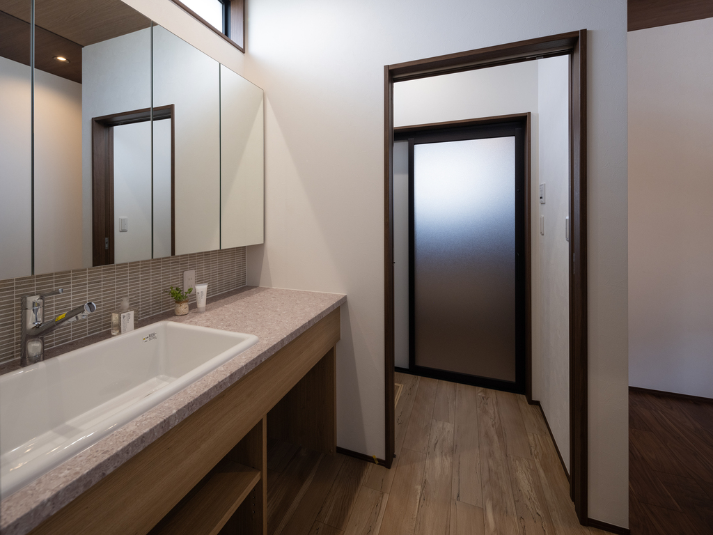 水廻りの動線を一直線に。収納も工夫して家族みんなに嬉しいサニタリースペース