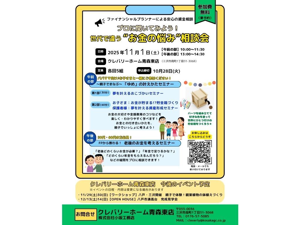 タイトル | 【青森東店】世代で違う“お金の悩み”相談会 |