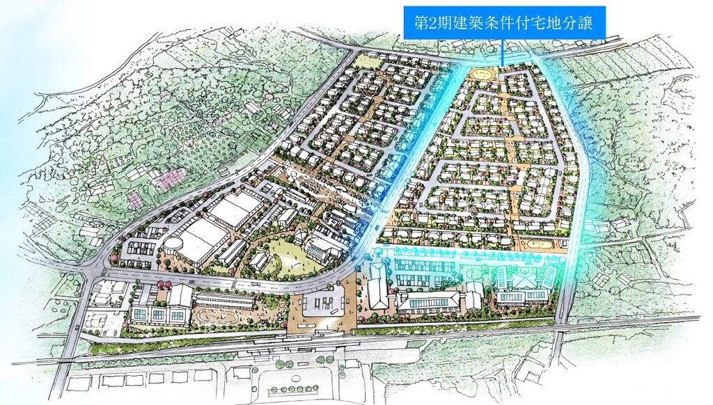 - ※建築条件付き土地について:土地売買契約締結後3ヶ月以内に指定された建設会社と建築請負契約を結んでいただくことを条件として販売されています。この期間内に建築請負契約が成立しない場合は、土地売買契約は無効となり、受領済みの手付金等は全額無利息で返還されます。