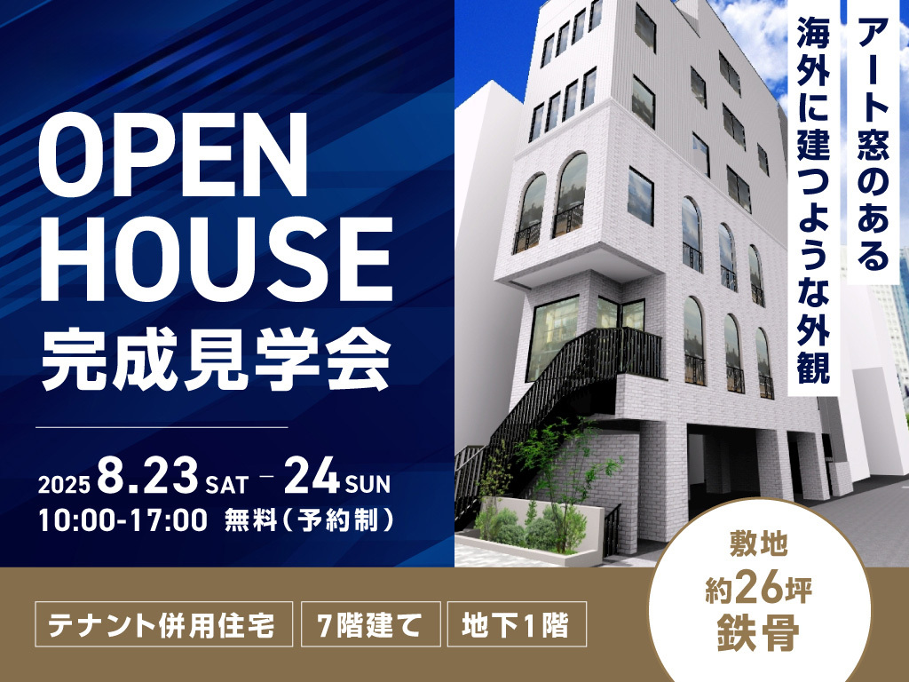 タイトル | 【台東区】テナント併用住宅の貴重事例!敷地約26坪鉄骨7階建て+地下1階 完成見学会 |