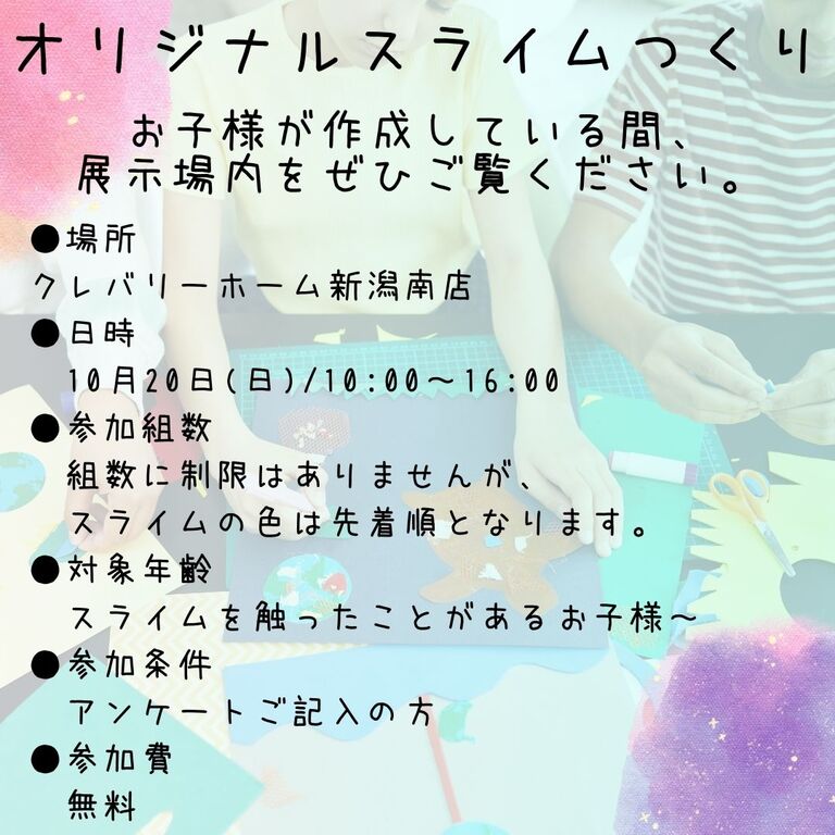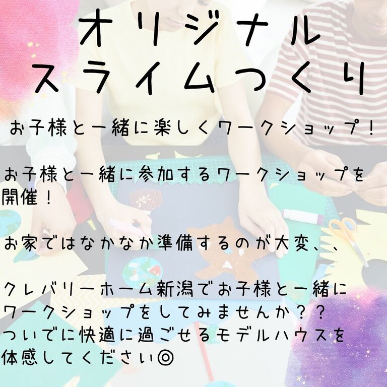 クレバリーホーム新潟では、お子様と一緒に楽しめる「オリジナルスライム作りワークショップ」を