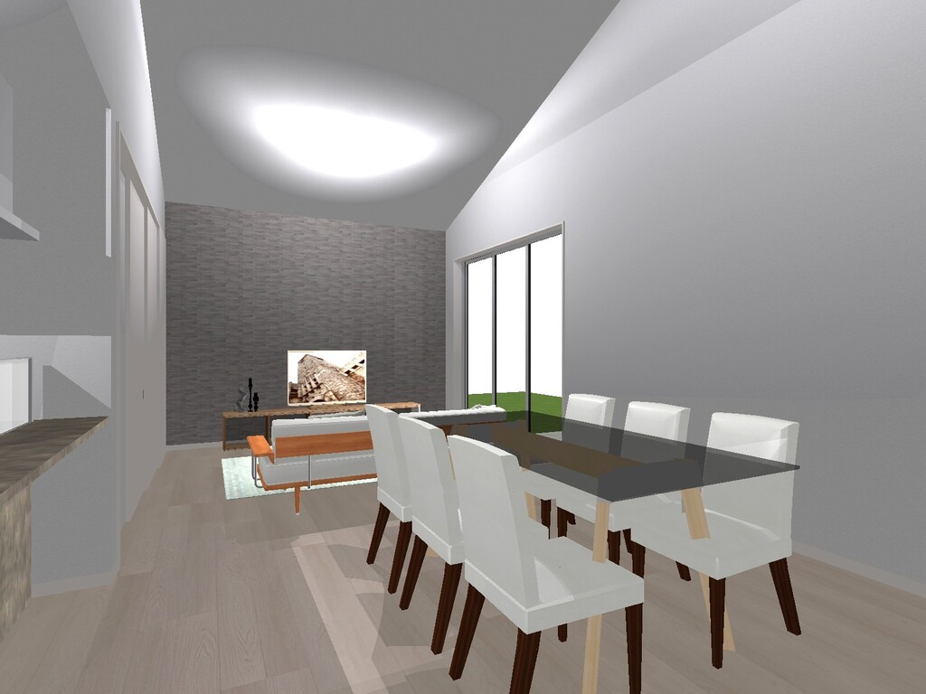 ・22帖のLDKは勾配天井で開放感たっぷり
