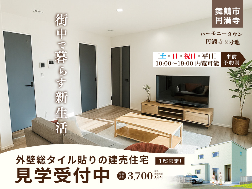 舞鶴市円満寺 ハーモニータウン円満寺で、あなたの夢の家を見つけるチャンスです!外壁総タイル貼りの美しい住宅は、あなたの理想の住まいを実現します。