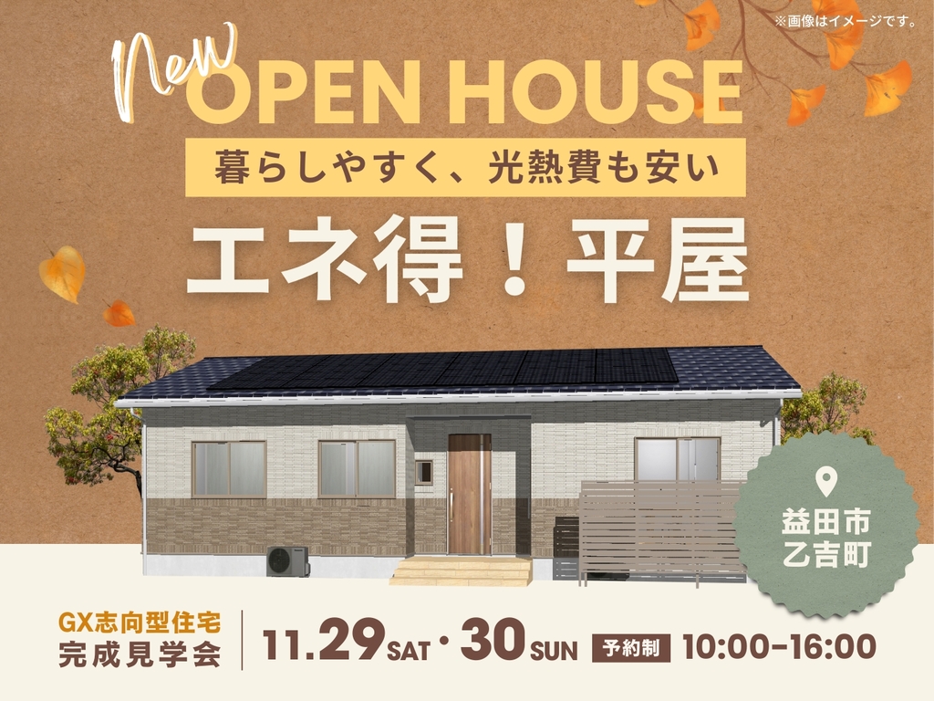 | タイトル | 28坪エネ得!平屋 完成見学会 |