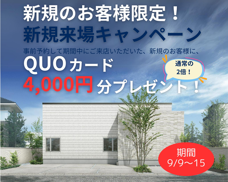 タイトル | 津山市【新規来場キャンペーン】事前予約でQUOカード4,000円分プレゼント! |