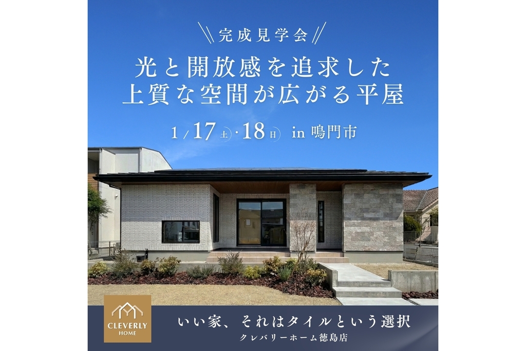 このたび、鳴門市に建設中のお客様の平屋が完成し、1月17日(土)・18日(日)の2日間にわたり、完成見学会を開催する運びとなりました!