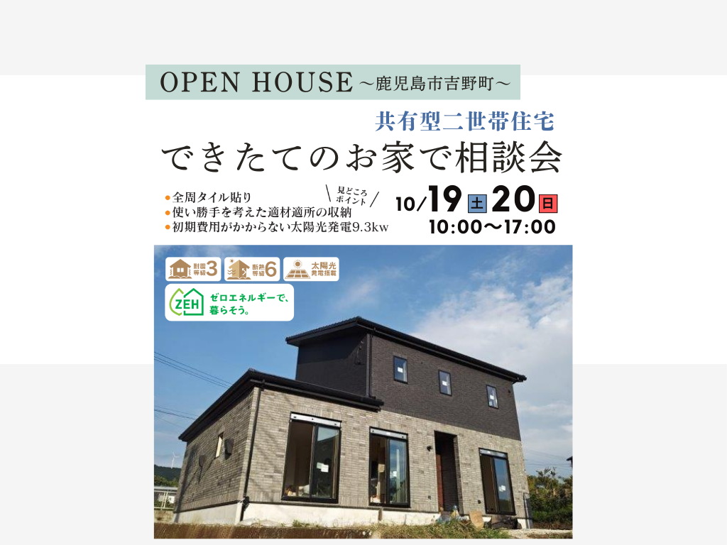見学会開催会場の場所につきましては「リビングかごしま10月19日号」をご覧いただくか、099-263-1188にお問い合わせください