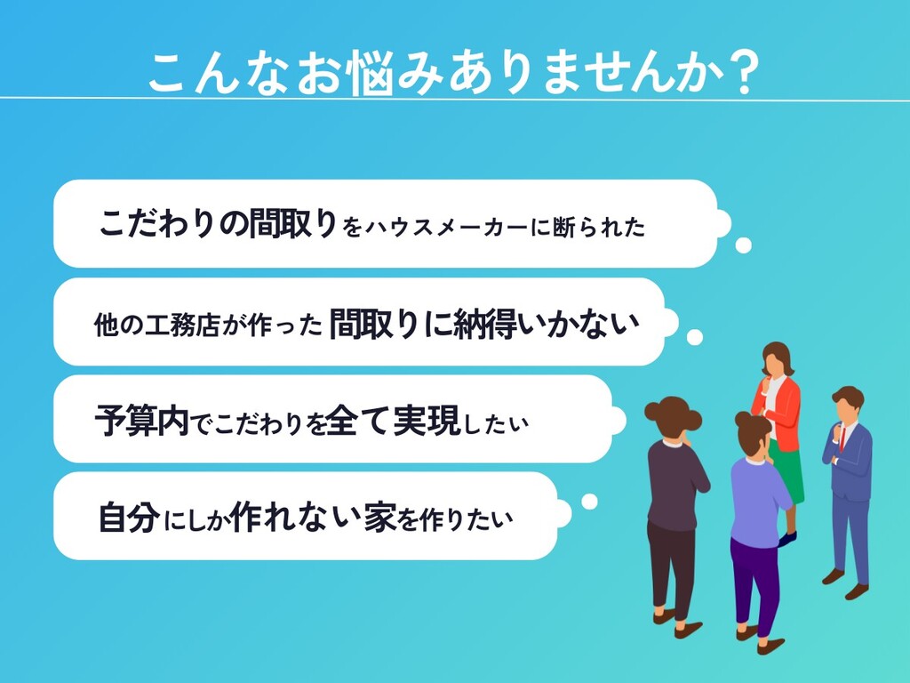 「理想の間取りをハウスメーカーに断られた…」「他の工務店の提案では納得できない…」そんなお悩みをお持ちではありませんか?