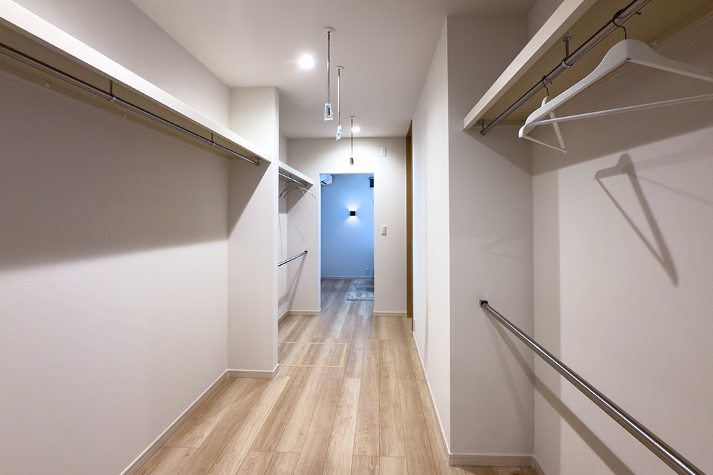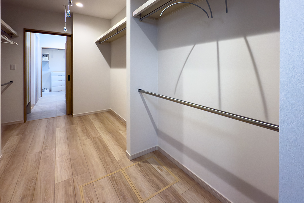 キッチンの裏手には、広々としたウォークインクローゼット。