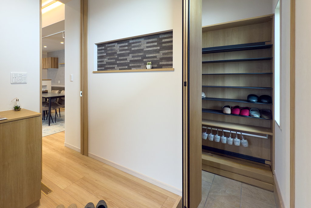 他にも納戸やシューズインクロークといった用途別の収納や、生活動線上に散りばめられた収納棚。