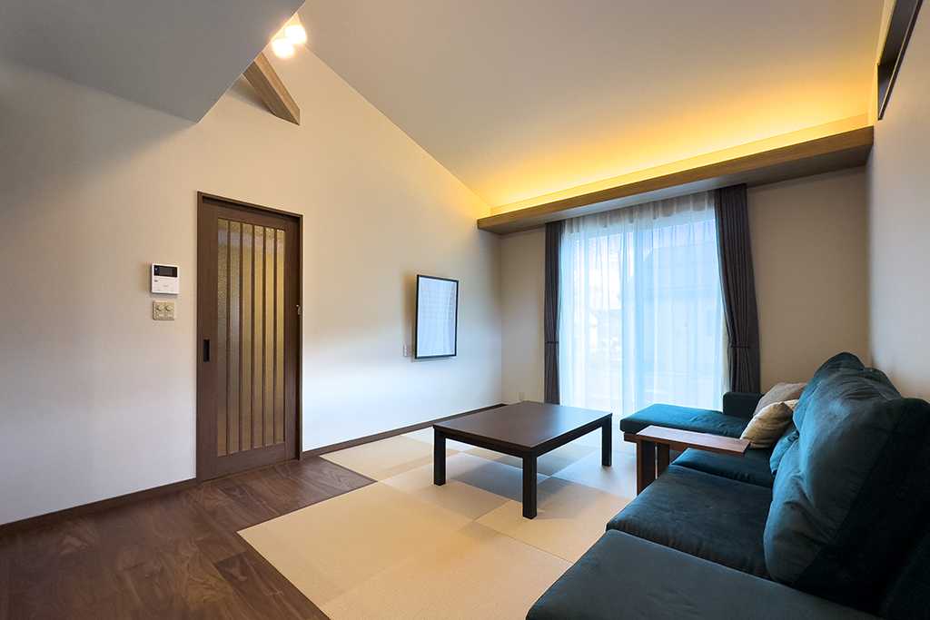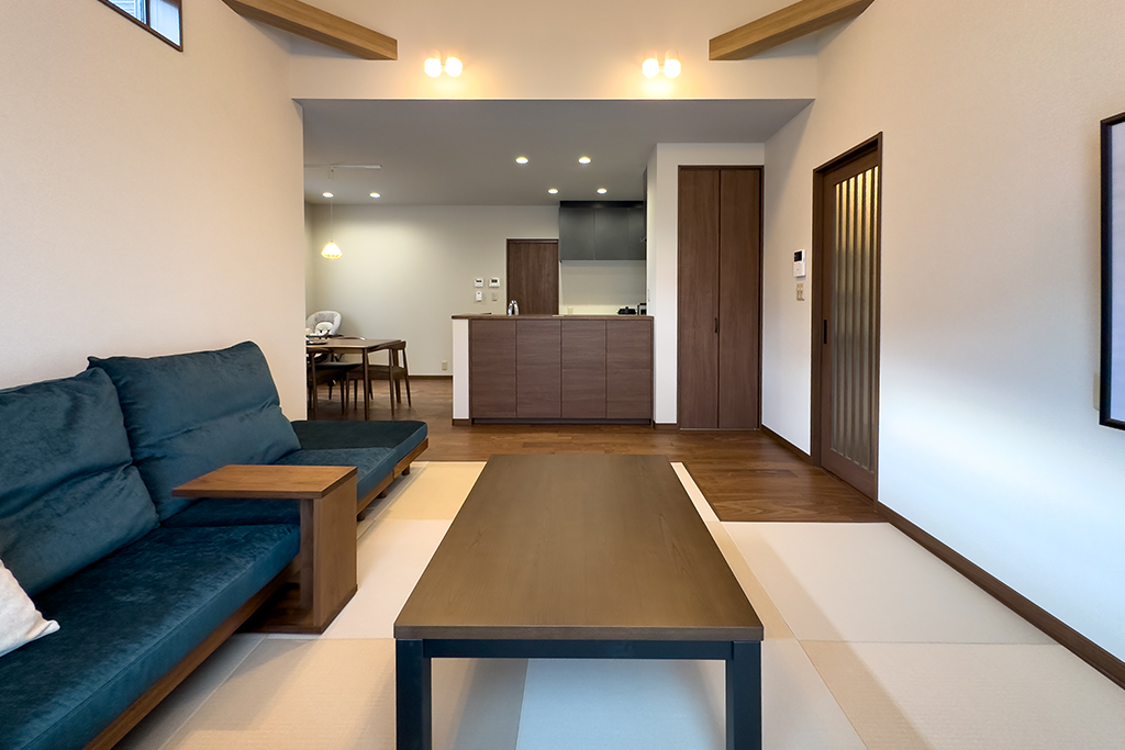 約20帖の広々LDKは、リビングの一角を畳敷きに仕上げました。