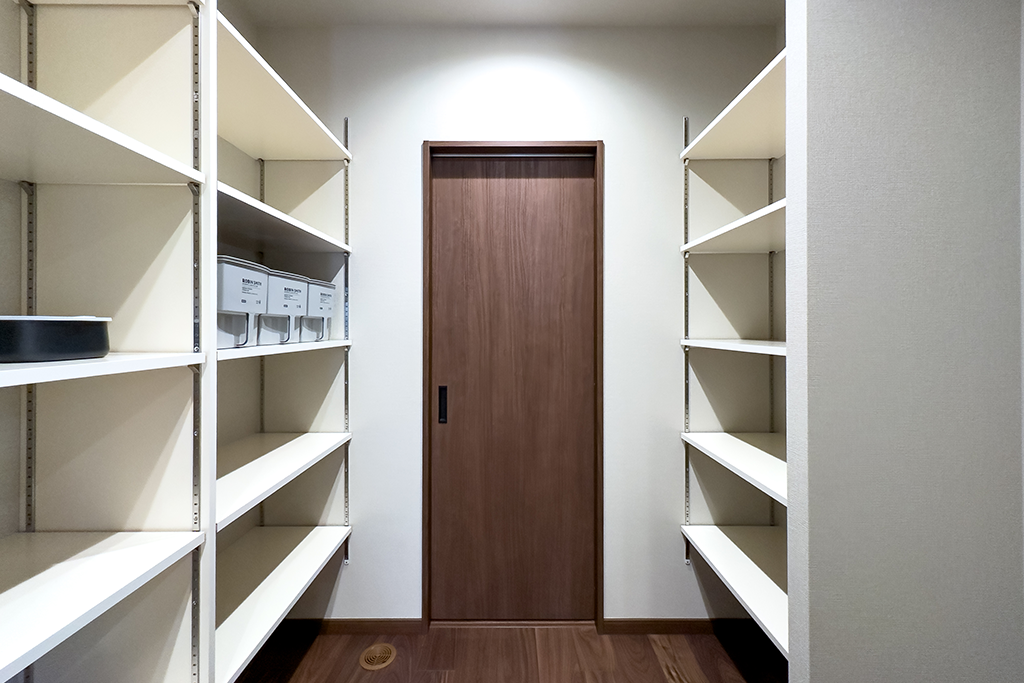 たくさんのストックをしながら生活感を隠せるだけでなく、玄関からもアクセスできるので買い物帰りの収納もスムーズです。