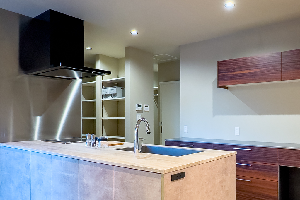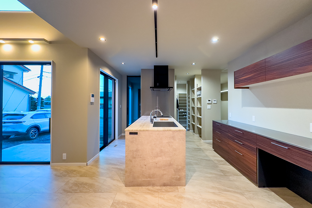 キッチンの隣には、冷蔵庫ごとまとめて収納できるゆとりのパントリー。