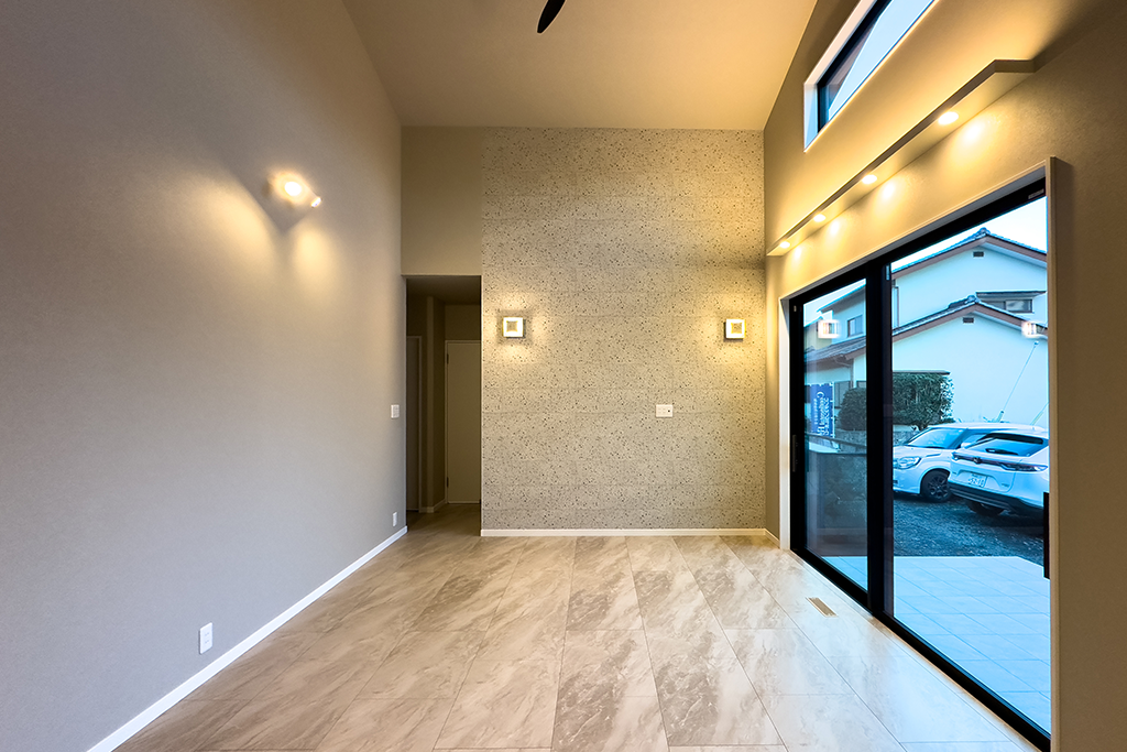 勾配天井の開放感と和のやすらぎが融合した、家族が自然に集まるくつろぎの場所になりました。