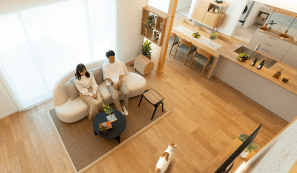 外気の暑さと寒さを感じさせない断熱等級6と、断熱と通風のバランスが整ったパッシブ設計で、いつでも快適に暮らせる家です。