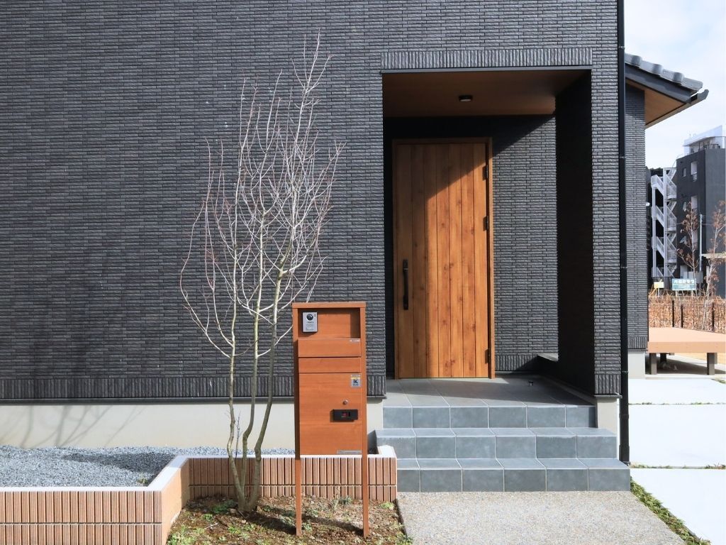 外観にはメンテナンスフリーで美しさが長持ちするタイルを採用。家族を迎える家の顔として、シックで落ち着いた印象を与えます。