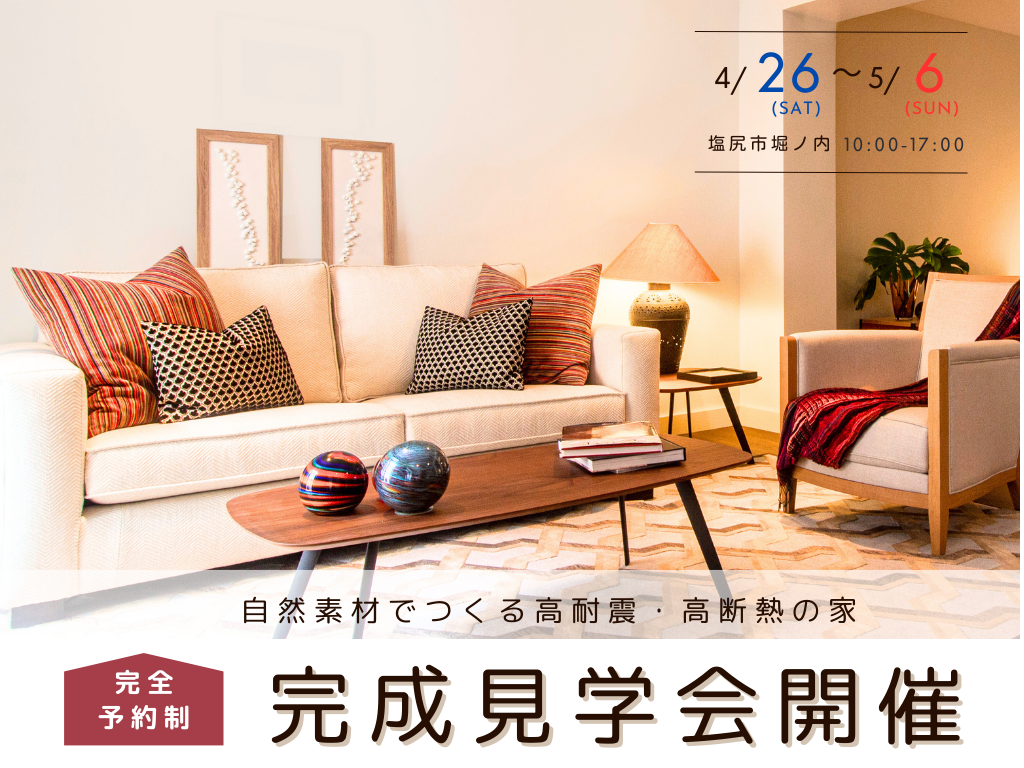 | タイトル | 【塩尻市】「自然素材でつくる高耐震・高断熱の家」完成見学会 |
