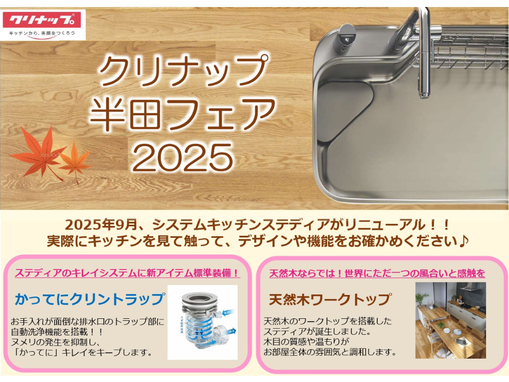 | タイトル | 一年に一度だけの特別イベント【クリナップキッチン・バスフェア】in半田 |