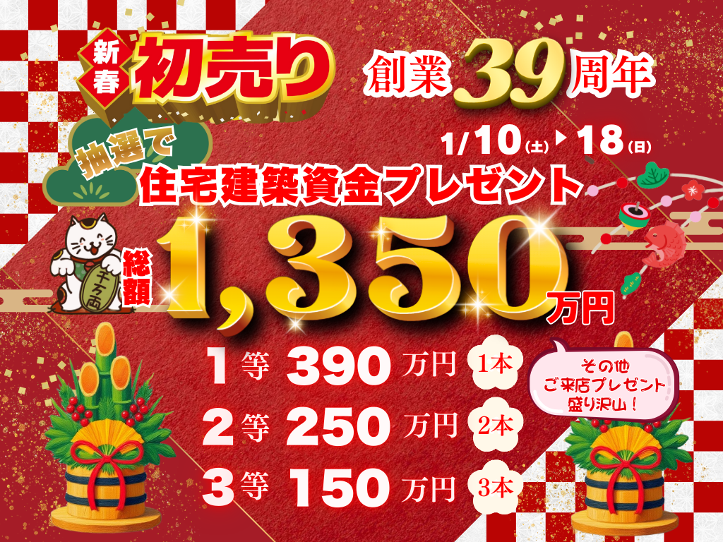 | タイトル | 【会津店】新春初売り!住宅建築資金プレゼント! |