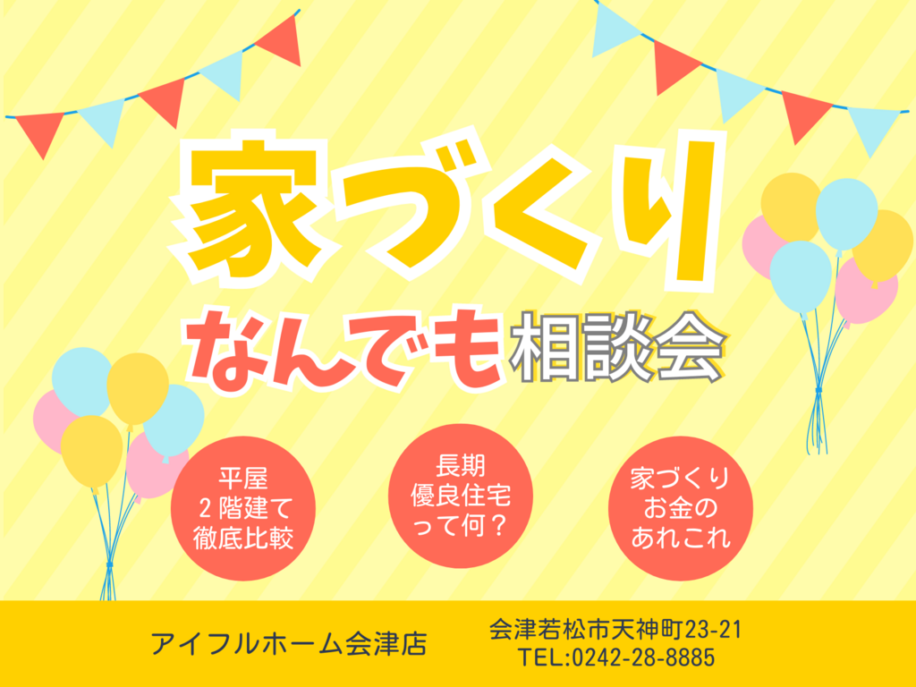 | タイトル | 【会津店】新築・リフォームの二刀流!家づくり何でも相談会 |