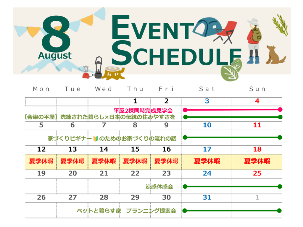 | タイトル | 【アイフルホーム会津店】8月のイベントカレンダー! |