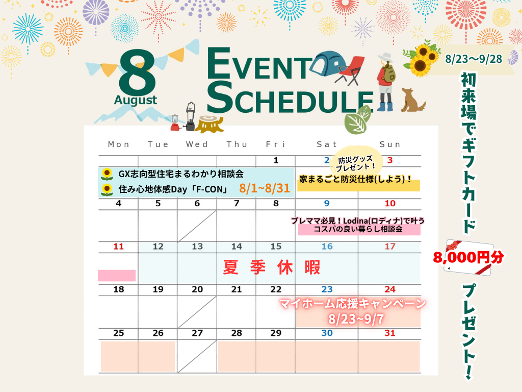 | タイトル | 【アイフルホーム会津店】8月のイベントカレンダー! |